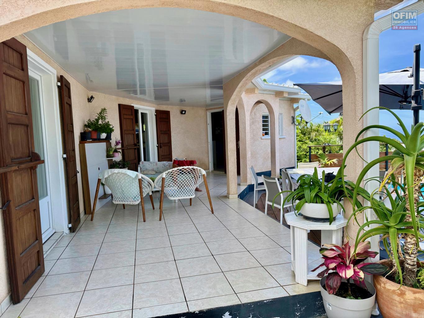 La maison principale semi-meublée d’environ 110 m² se compose d’un salon, d’une cuisine intérieure, d’une cuisine extérieure équipée et couverte, de deux chambres, d’un bureau, d’une salle de bain, de toilettes séparées et d’une varangue donnant sur une piscine chauffée de 21 m². Elle dispose également d’un ballon d’eau chaude de 500 L et de panneaux solaires offrant une autonomie complète.